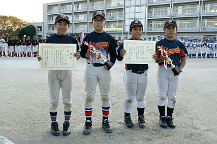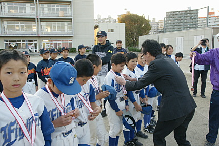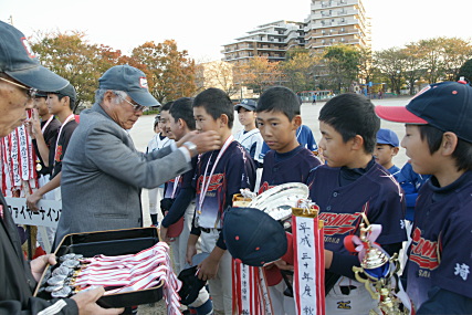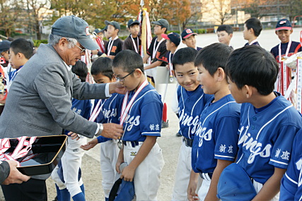 秋季大会のメダル贈呈です。 ファイヤーナインに金メタルが贈られました。 |