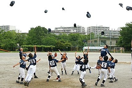 大熱戦を制して初優勝した 志木二小メイツの帽子投げです。 頑張りました。 |