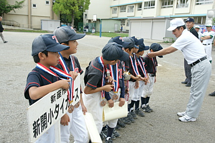 銅メタルが 新開小タイガース選手に贈られました。 |