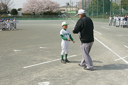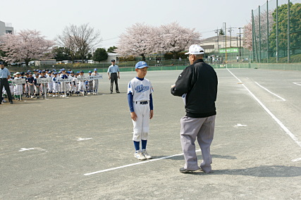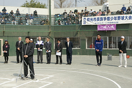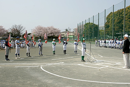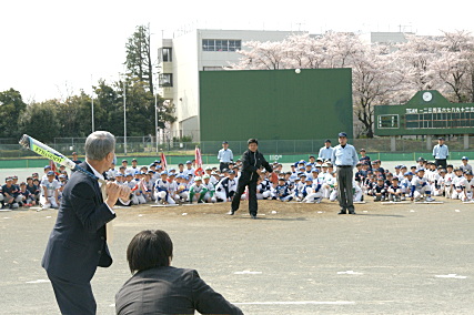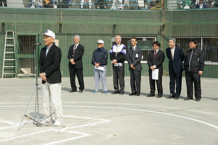 橋本会長の挨拶です。 各チームは少年野球らしく、 攻守交替はスピーディに行いましょう。 |