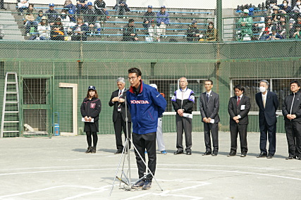 ホンダ硬式野球部の 河原井マネージャーの挨拶です。 |