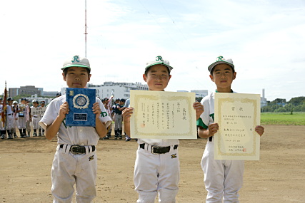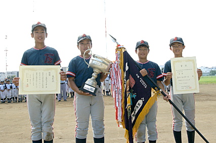 優勝の五小ファイターズです。 ブロック戦の初戦で新倉に負けましたが、 その後の快進撃で優勝を勝ち取りました。 |
