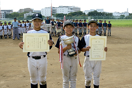 優勝の白小クラブです。 決勝では強力打線が爆発し、 宿敵 五小を破っての優勝でした。 |