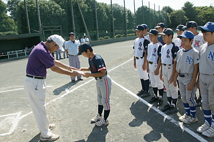 学童選抜チーム選手の表彰です。 和光市代表として、埼玉県学童大会に出場し、 ベスト8まで進出しました。 |